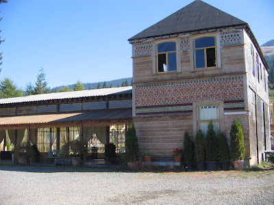 No this isn't Switzerland, it's Oregon - with some haze from nearby wildfires almost obsuring Mt. Hood. This is the scene that greets us as we arrive at the orchard's main courtyard.